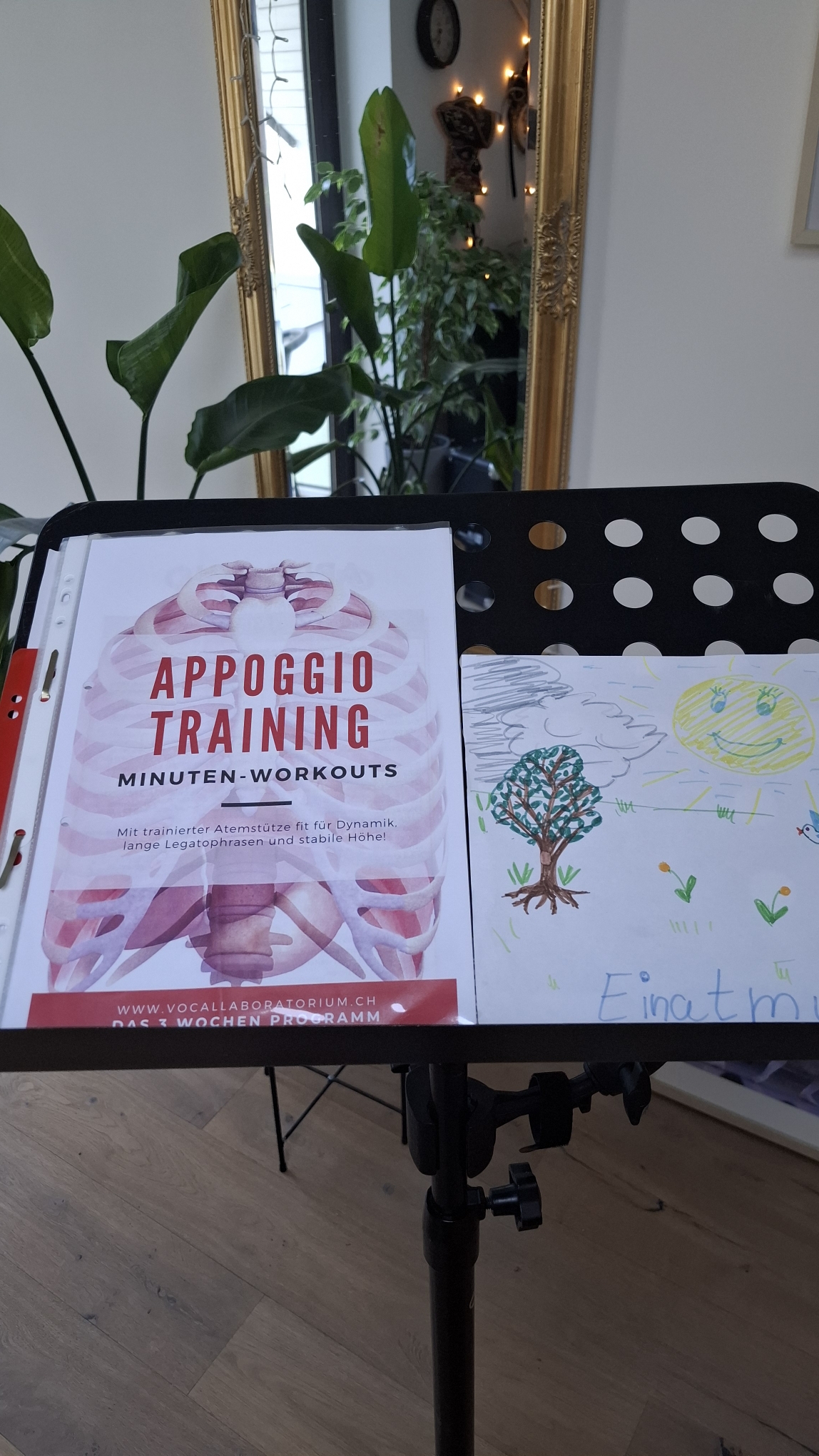Anschließend machen wir zusammen Stimmbildung. Ich spiele und singe Dir bei mir zu Hause am Klavier die Übungen vor. Du führst sie durch.